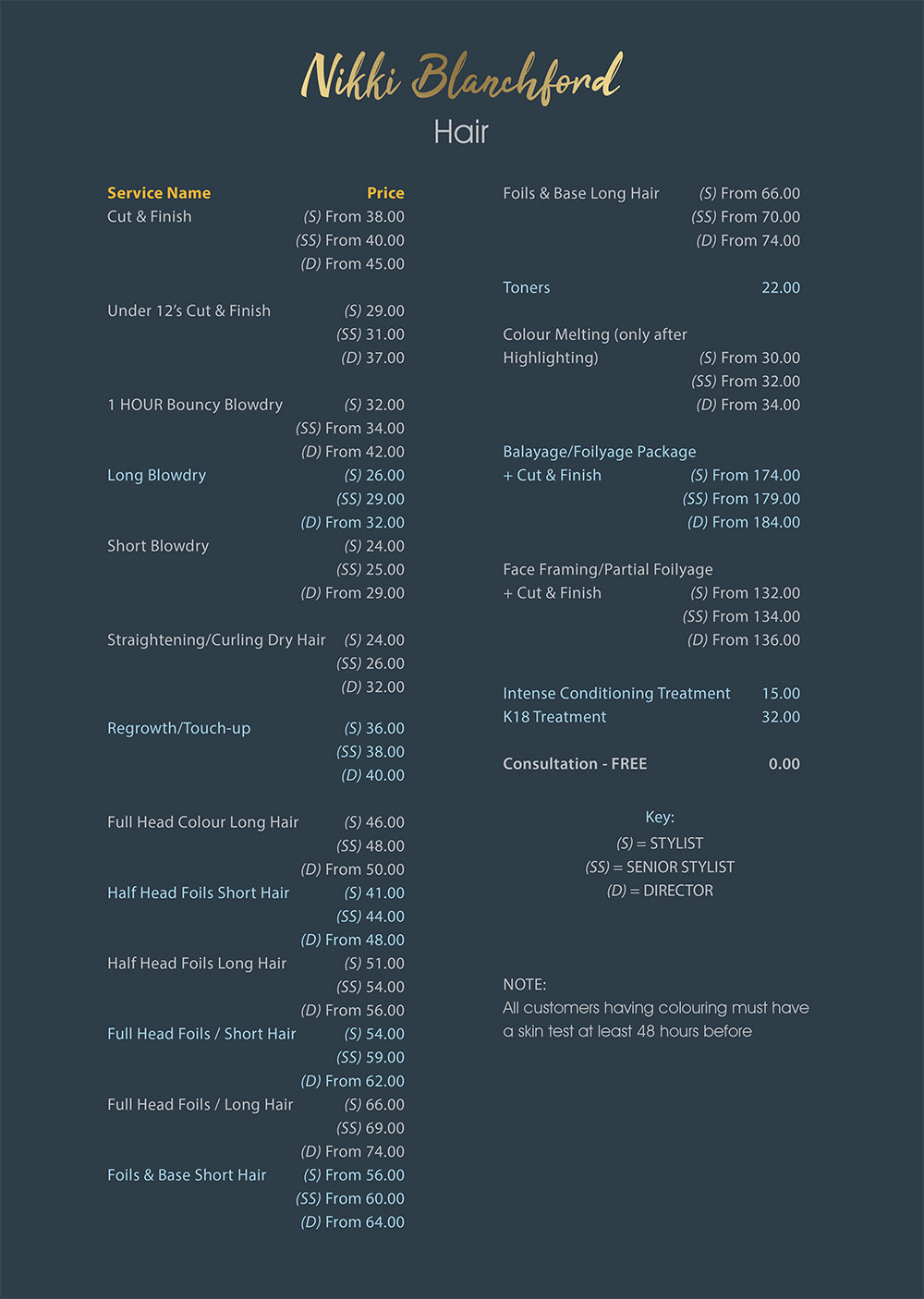 Please book a complimentary consultation if you’re a new guest to the salon or feel like having a change so we can make sure the appropriate time is booked.